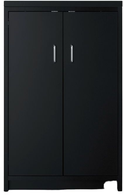 Perfect for break rooms, the CWC1ADA is a 21.5" wide cabinet in a jet black manufactured wood finish sized at 34" high to comply with ADA guidelines for accessible counter height. It features a French door swing with pre-installed handles in a silver finish. The interior includes an adjustable shelf to accommodate a variety of items.